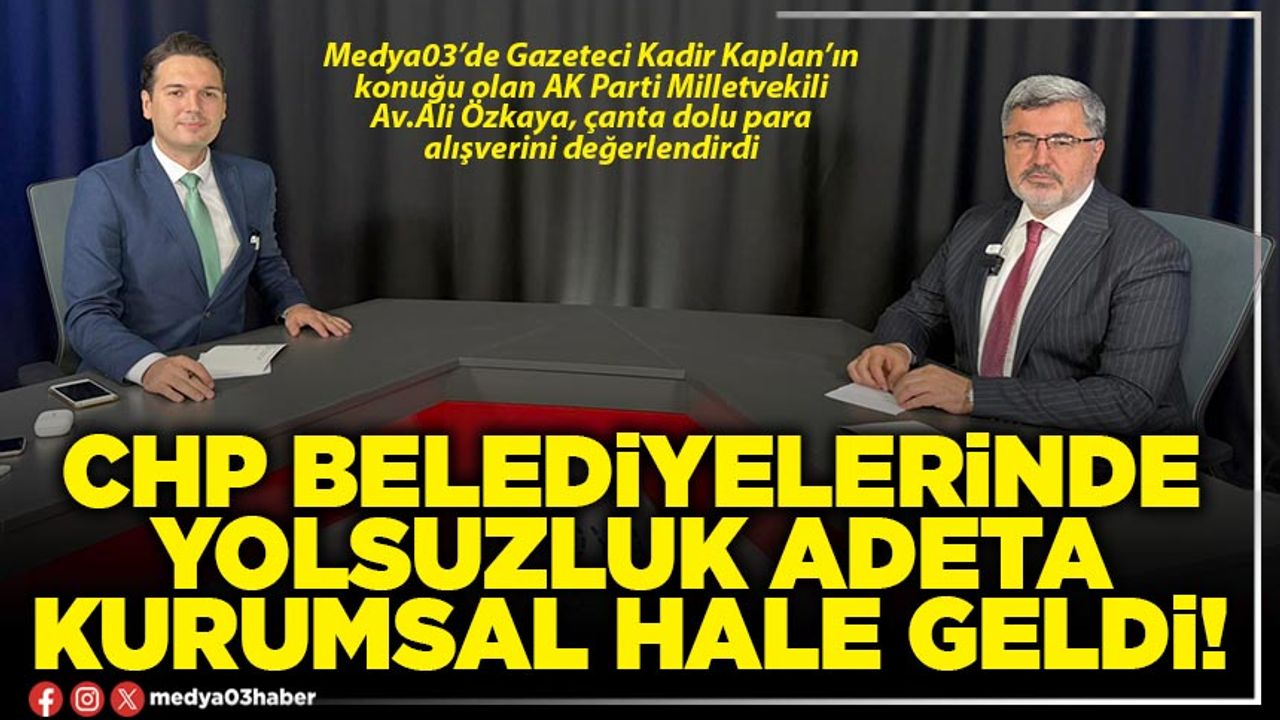 AK Parti Milletvekili Av.Ali Özkaya Medya03’de Kadir Kaplan’ın konuğu oldu. Afyonkarahisar ve Türkiye gündeminde bomba etkisi yaratan CHP’li Belediye Meclis üyesinin işyerinde çanta dolusu para alışverişinin yapıldığı görüntülerle ilgili değerlendirmelerde bulunan Özkaya şunları söyledi: “Bizler bu konuyu sizin gibi basından öğrendik. Son bir hafta, 10 gündür Afyon kamuoyunda kulaktan kulağa fısıldanan, böyle bir hususun olduğu söyleniyordu. Afyonkarahisar Belediyesi ile ilgili ilk günden itibaren çok yoğun şekilde benzer söylemler var. Bilhassa Belediyenin üst yönetimi ve Belediye Başkanının yakınında olan bir kişinin odağında olarak, onun çevresinde imarla ilgili konularda ve Belediyenin iş yapan müteahhitler, ruhsat alacaklar, inşaat yapı ruhsatı alacaklarla ilgili gayrimenkul satışlarında ve her konuda mutlaka belediyede belirli bir yönlendirme olduğu, bir kişilerin konuştuğu, bir kişinin gelip bu paraları toplayıp götürdüğü ile ilgili çok yoğun dedikodular vardı.”