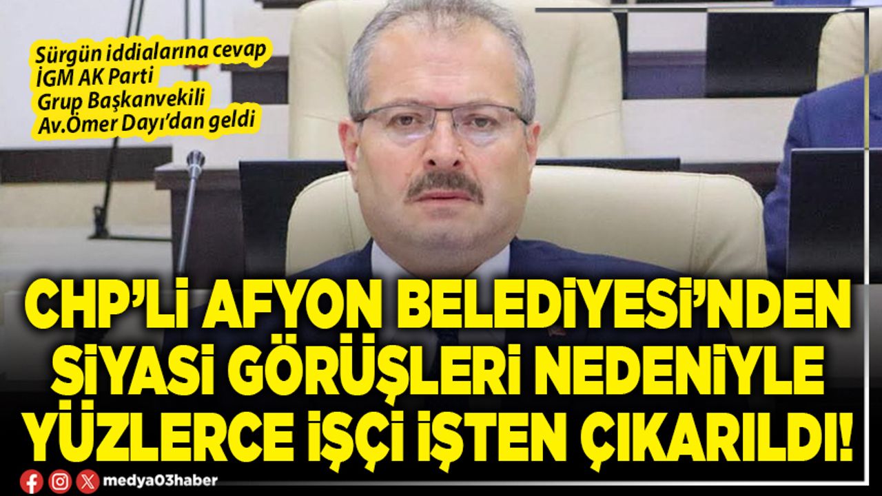 İGM AK Parti Grup Başkanvekili Av.Ömer Dayı bugün yaptığı açıklamada yapılan haberlere ve açıklamalara tepki gösterdi. Dayı, “CHP’li Afyonkarahisar Belediyesinde siyasi görüşleri nedeni ile yüzlerce işçi haksız ve hukuksuz bir şekilde işten çıkarıldı. Çıkarılan işçilerin yerine 1000’in üzerinde işçi alımı yapıldı.” dedi.