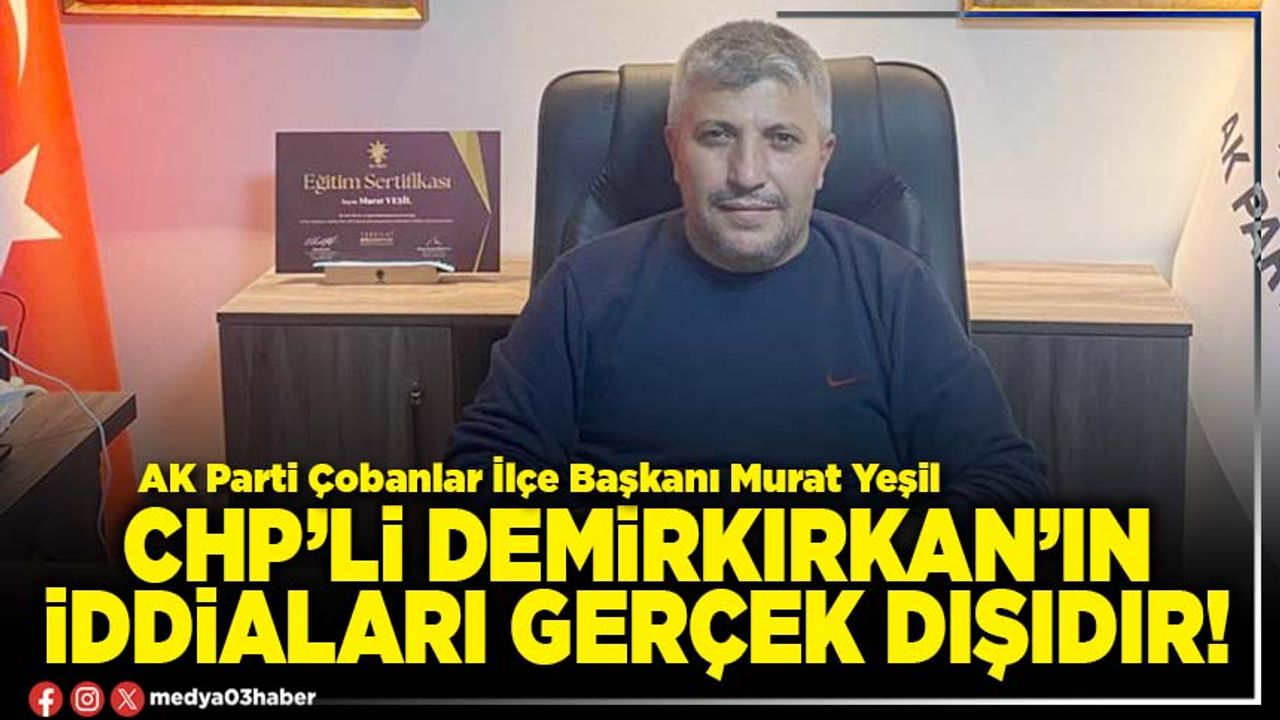 Konuyla ilgili yazılı bir açıklama yapan AK Parti Çobanlar İlçe Başkanı Murat Yeşil şunları söyledi: “Bazı basın yayın organlarında CHP’li Afyonkarahisar Belediye Meclis Üyesi Kemal Demirkırkan tarafından Kocaöz Belediyemizin tarımsal faaliyetlerine yönelik ortaya atılan iddialar üzerine kamuoyunun doğru bilgilendirilmesi amacıyla açıklama yapma gereği doğmuştur.