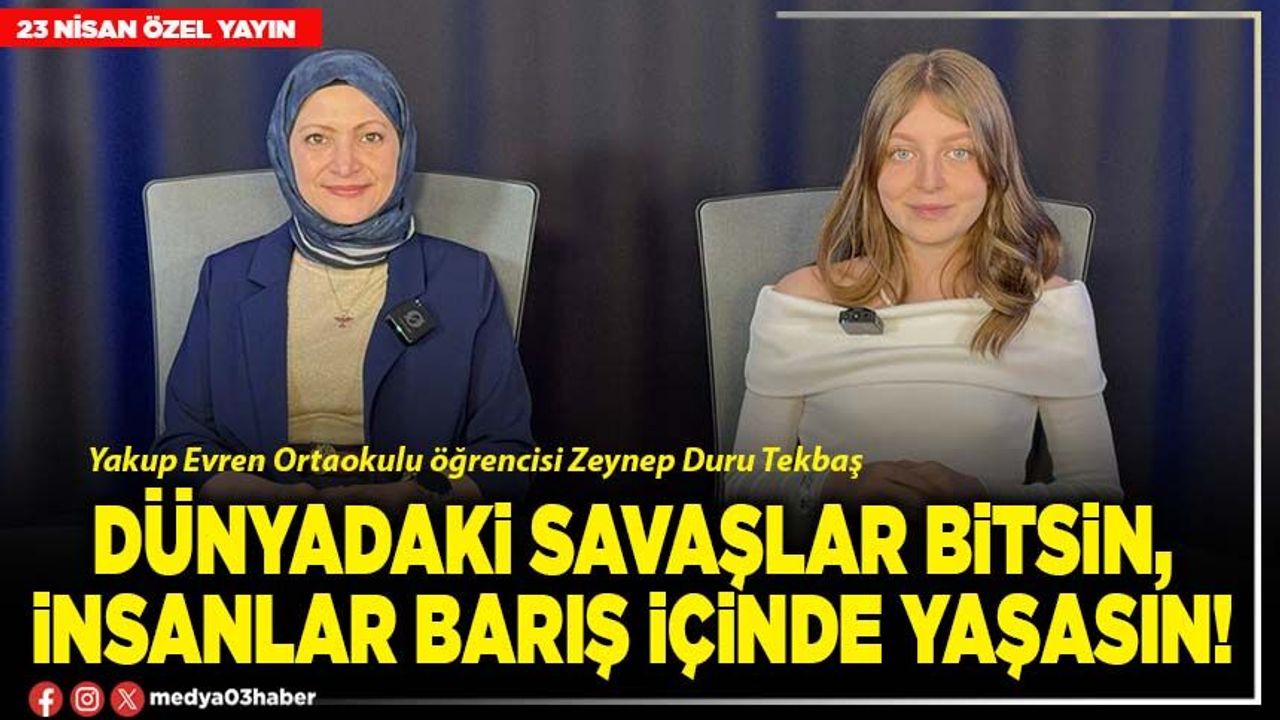 Afyonkarahisar’da birbirinden başarılı öğrenciler 23 Nisan Ulusal Egemenlik ve Çocuk Bayramı nedeniyle Medya03’de düzenlenen “Geleceğin Mimarları” özel yayının konuğu oldu. Rasime Fedakar’ın moderatörlüğünde gerçekleşen programa konuk olan Yakup Evren Ortaokulu öğrencisi Zeynep Duru Tekbaş, 23 Nisan Ulusal Egemenlik ve Çocuk bayramının önemini, gelecek planlarını ve beklentilerini paylaştı.
