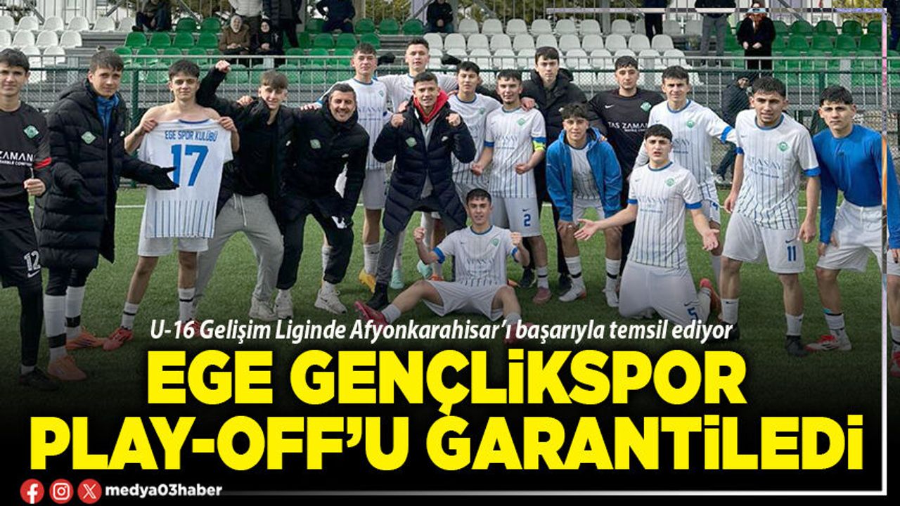 TFF U16 Gelişim Ligi 14. grupta adından söz ettiren Ege Gençlikspor ligin bitimine 3 hafta kala play-off oynamayı garantiledi. Temsilcimiz bugün sahasında konuk ettiği Eskişehir İdmangücüspor'u 5-0 mağlup etti.