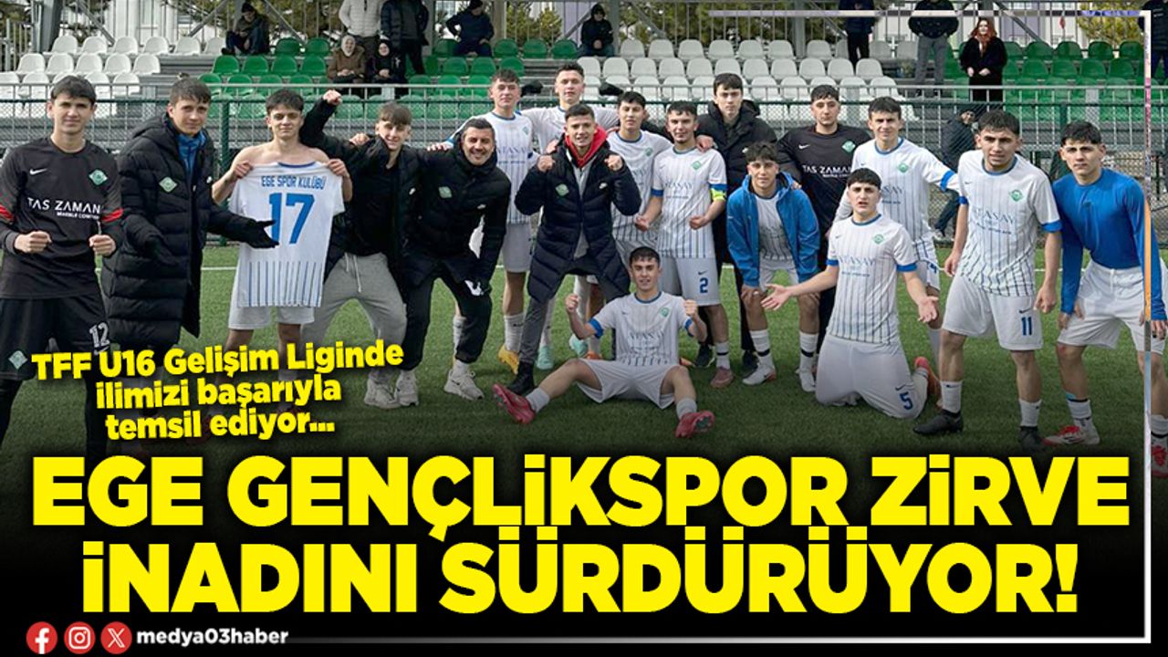 İlk kez mücadele ettiği TFF U16 Gelişim Liginde Afyonkarahisar’ı başarıyla temsil eden Ege Gençlikspor hafta sonu 18. hafta mücadelesinde Kütahya Yeşilayspor ile karşılaştı. Rakibi karşısında baştan sona üstün oynayan temsilcimiz; Eren Özçelik, Arda Altundağ, Yusuf Tufan, Abdurrahman İren’in golleriyle sahadan 4-1 galip ayrılarak haftayı 3 puanla kapattı.