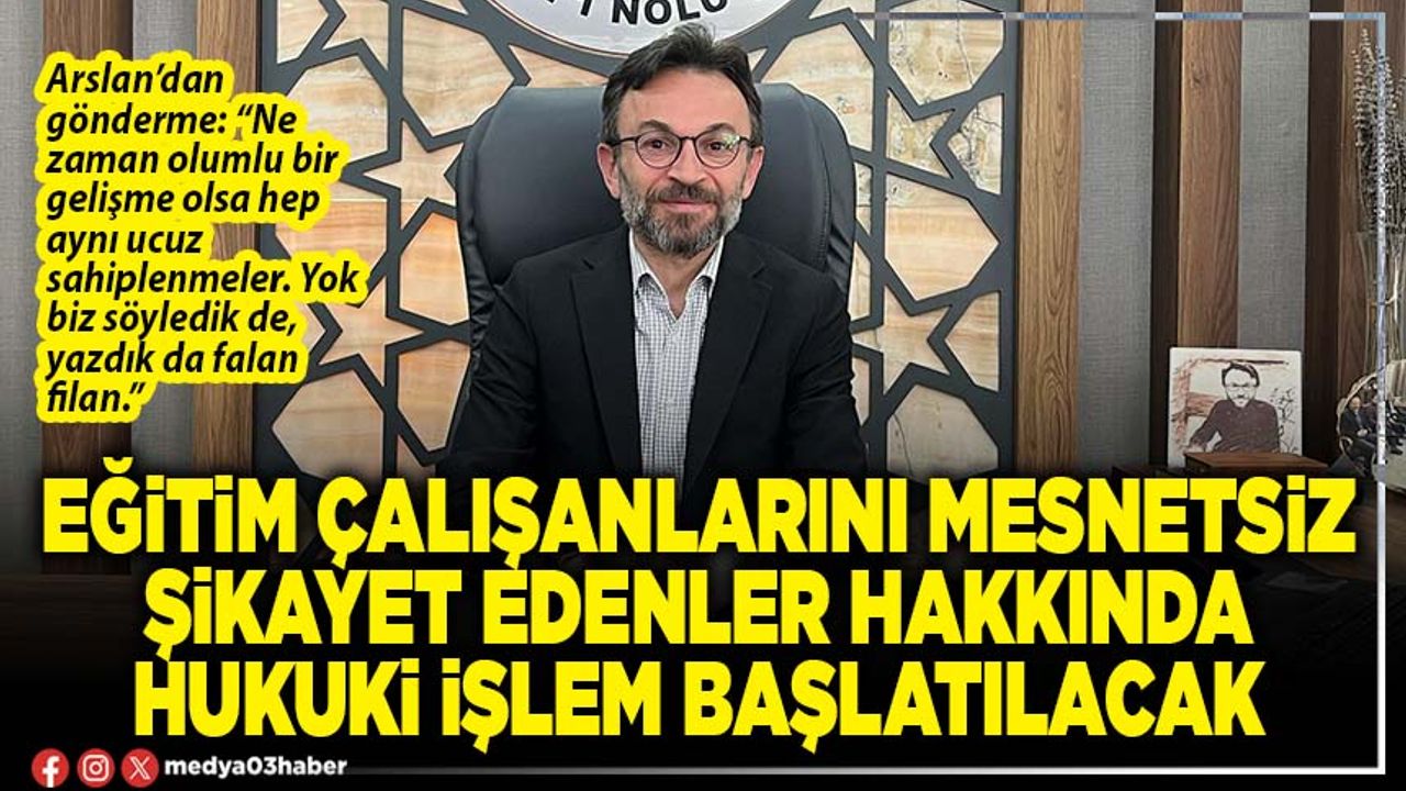Millî Eğitim Bakanlığı (MEB) Kurum İdari Kurulu’nun gündemine taşıdıkları bir taleplerinin daha karşılık bulduğunu ifade eden Eğitim Bir Sen Afyonkarahisar 1 Nolu Şube Başkanı Mustafa Arslan yaptığı yazılı açıklamada şunları söyledi: “MEB Kurum İdari Kurulu (KİK) Nisan ve Ekim 2025 toplantılarında ısrarla gündeme getirip imza altına aldırdığımız eğitim çalışanlarını mesnetsiz şikâyetlere karşı korumayı amaçlayan talebimiz karşılık buldu. Milli Eğitim Bakanlığının yazısı doğrultusunda, eğitim çalışanlarını asılsız şikâyetlerle mağdur edenler hakkında hukuki işlem başlatılacak”