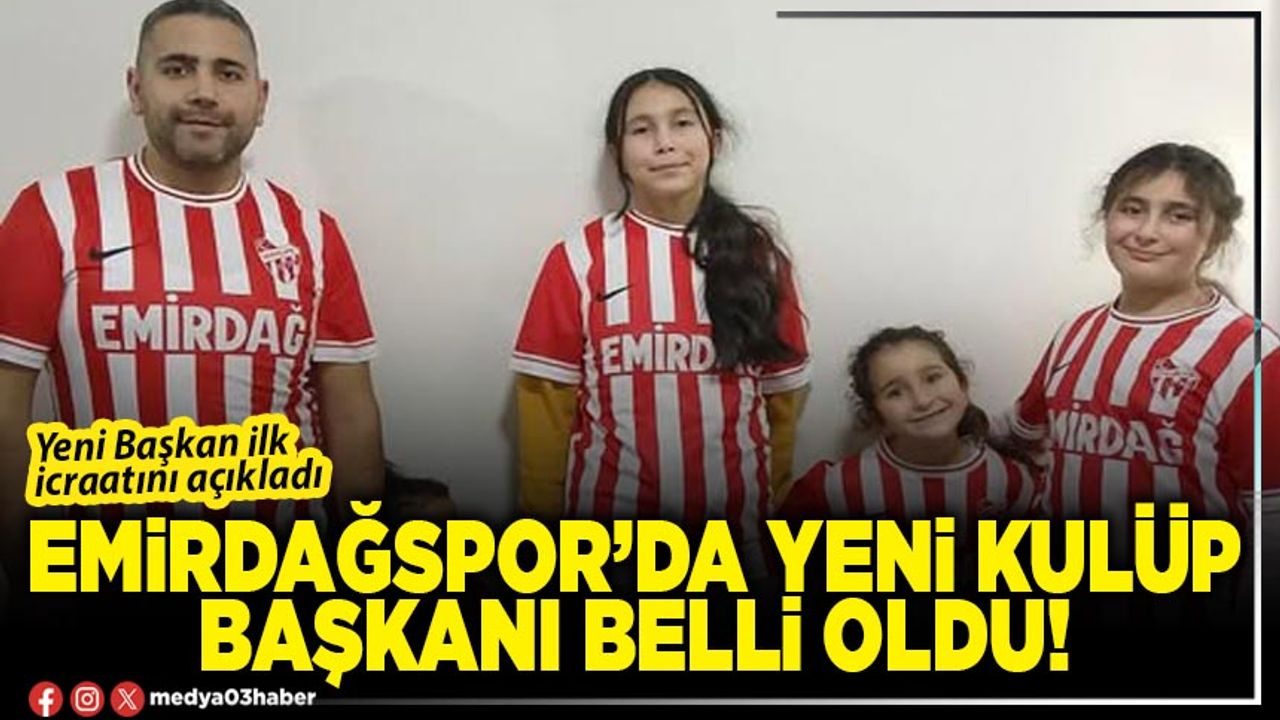 Kulüpten Emirdağspor’un yeni başkanıyla ilgili şu açıklama yapıldı: “Musa Kuru Emirdağspor’umuzun yeni Başkanı oldu. Resmi olarak atanan Başkanımız bugüne kadar Emirdağspor’ a her zaman destek olmuştur . Sponsorumuz şimdi artık dümenin başına geçti . Projeler ve yeniliklerle özlenen Emirdağspor’u bekliyoruz başkanım.” ifadelerine yer verildi.