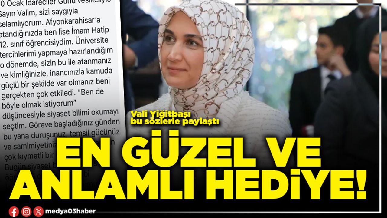 Öğrencinin Vali Yiğitbaşı’na yazdığı mesaj ise şöyle: “10 Ocak İdareciler günü vesilesiyle Sayın Valim, sizi saygıyla selamlıyorum. Afyonkarahisar'a atandığınızda ben lise İmam Hatip 12. sınıf öğrencisiydim. Üniversite tercihlerimi yapmaya hazırlandığım o dönemde, sizin bu İl'e atanmanız ve kimliğinizle, inancınızla kamuda güçlü bir şekilde var olmanız beni gerçekten çok etkledi. 'Ben de böyle olmak istiyorum' düşüncesiyle siyaset bilimi okumayı seçtim. Göreve başladığınız günden bu yana duruşunuz, temsil gücünüz ve samimiyetinizle biz gençler için çok kıymetli bir örnek oldunuz. Bugün siyaset bilimi birinci sınıf öğrencisi olarak, sizin gibi idarecilerin varlığı bana umut ve cesaret veriyor. İyi ki varsınız, yolumuza ışık oluyorsunuz. İyi ki varsınız devlet anamız.”