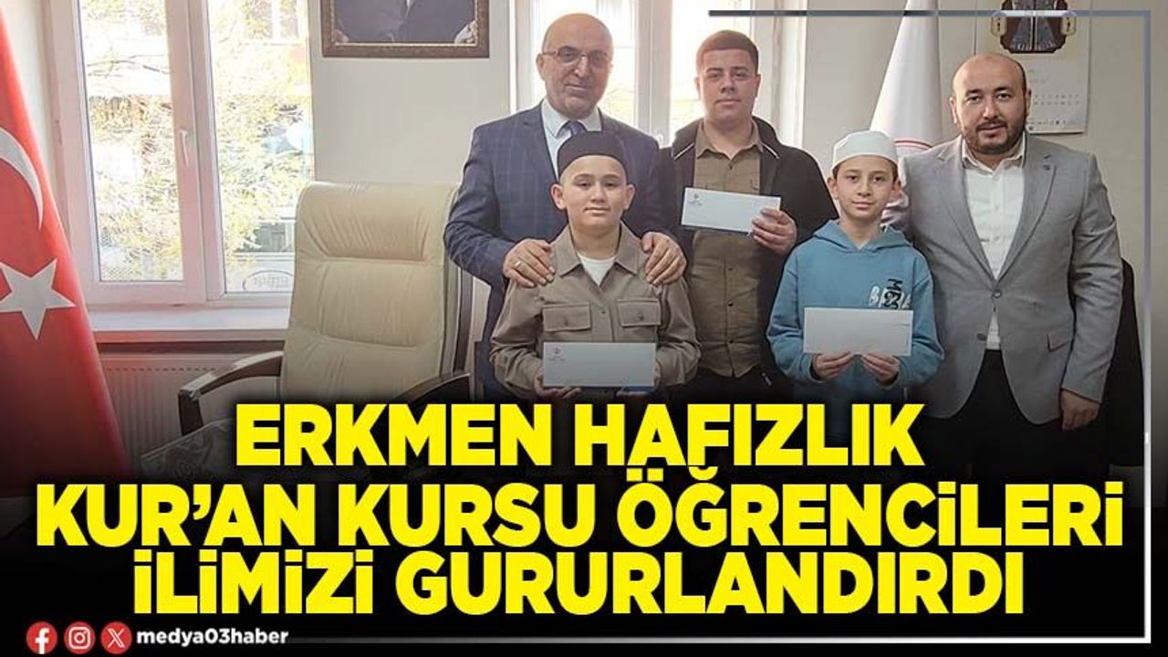 Milli Eğitim Bakanlığı Din Öğretimi Genel Müdürlüğü tarafından ülke geneli düzenlenen Ortaokul ve Lise kategorisindeki öğrencilere yönelik "Hafızlık ve Kur'an-ı Kerim'i Yüzüne Okuma Yarışması" düzenlendi. Yarışmada Erkmen Hafızlık Yatılı Erkek Kur’an Kursu öğrencilerinden Muharrem Ufkum Koç Hafızlık ortaokul kategorisinde bölge birincisi olurken, Ahmet Çakır Kur'an-ı Kerim'i yüzüne okuma ortaokul kategorisinde bölge üçüncüsü, Mevlüt Oruç ise Hafızlık lise kategorisinde bölge 4.sü oldu.