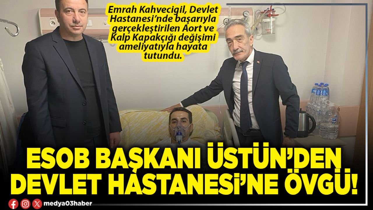 Geçtiğimiz günlerde geçirdiği trafik kazasında ağır yaralanan ve Afyonkarahisar Devlet Hastanesi’nde yapılan başarılı aort ve kalp kapakçığı değişimi ameliyatıyla hayata yeniden tutunan eski personeli Emrah Kahvecigil’i hastanede ziyaret ederek geçmiş olsun dileğinde bulunan ESOB Başkanı Cengiz Üstün hastane yönetimine ve ameliyatı gerçekleştiren doktor ve ekibine de teşekkür etti.