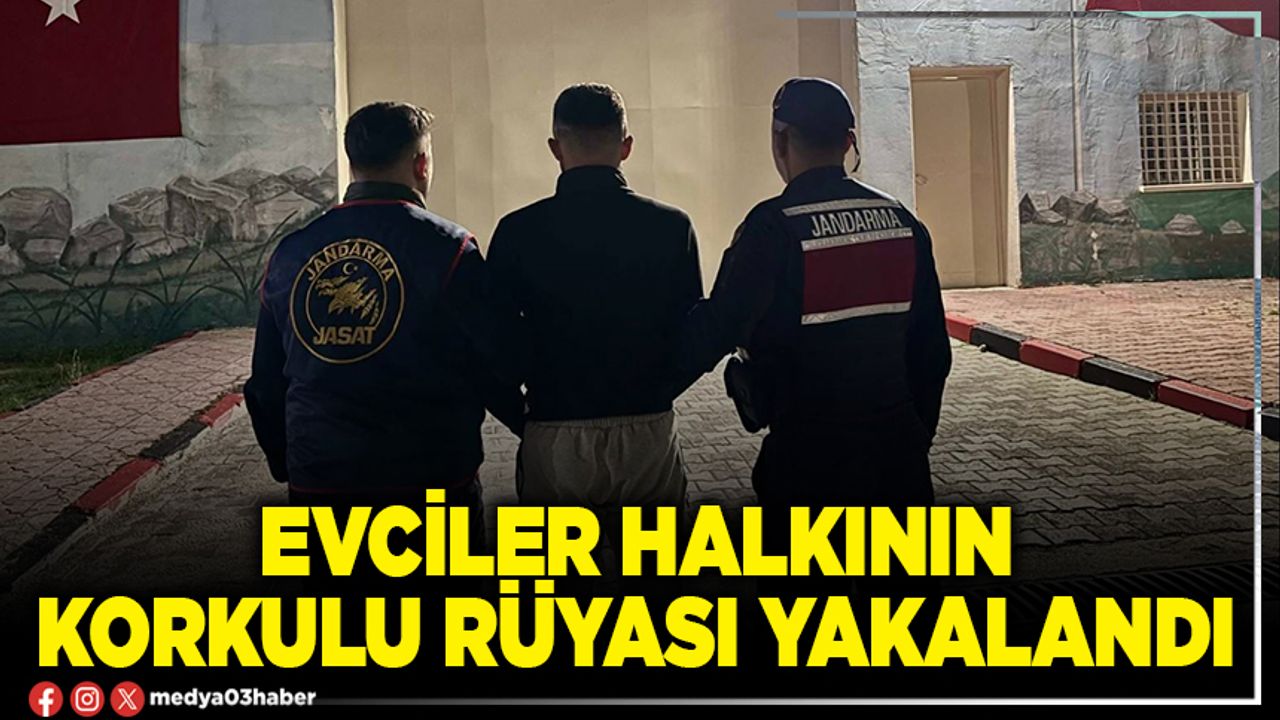 Edinilen bilgilere göre; Afyonkarahisar İl Jandarma Komutanlığı ekipleri Evciler ilçesinde meydana gelen 3 farklı evden çeşitli ziynet eşyalarının çalınması olayı ile ilgili olarak yaptığı titiz çalışma sonrasında A.E. isimli şüpheli şahsı yakaladı. Şahıs çıkarıldığı mahkemece tutuklanarak cezaevine teslim edildi.
