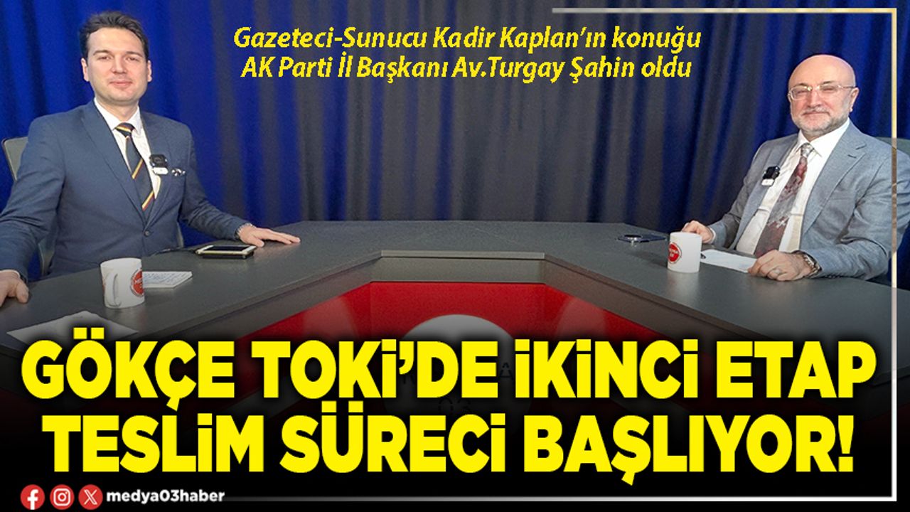 AK Parti İl Başkanı Av.Turgay Şahin, Medya03’de ‘Siyaset Dünyası’ programında Gazeteci-Sunucu Kadir Kaplan’ın sorularını yanıtladı. Başkan Şahin Gökçe TOKİ 1. etapta yaşanan sıkıntılar ile 2. etabın teslim süreciyle ilgili önemli açıklamalar yaptı.