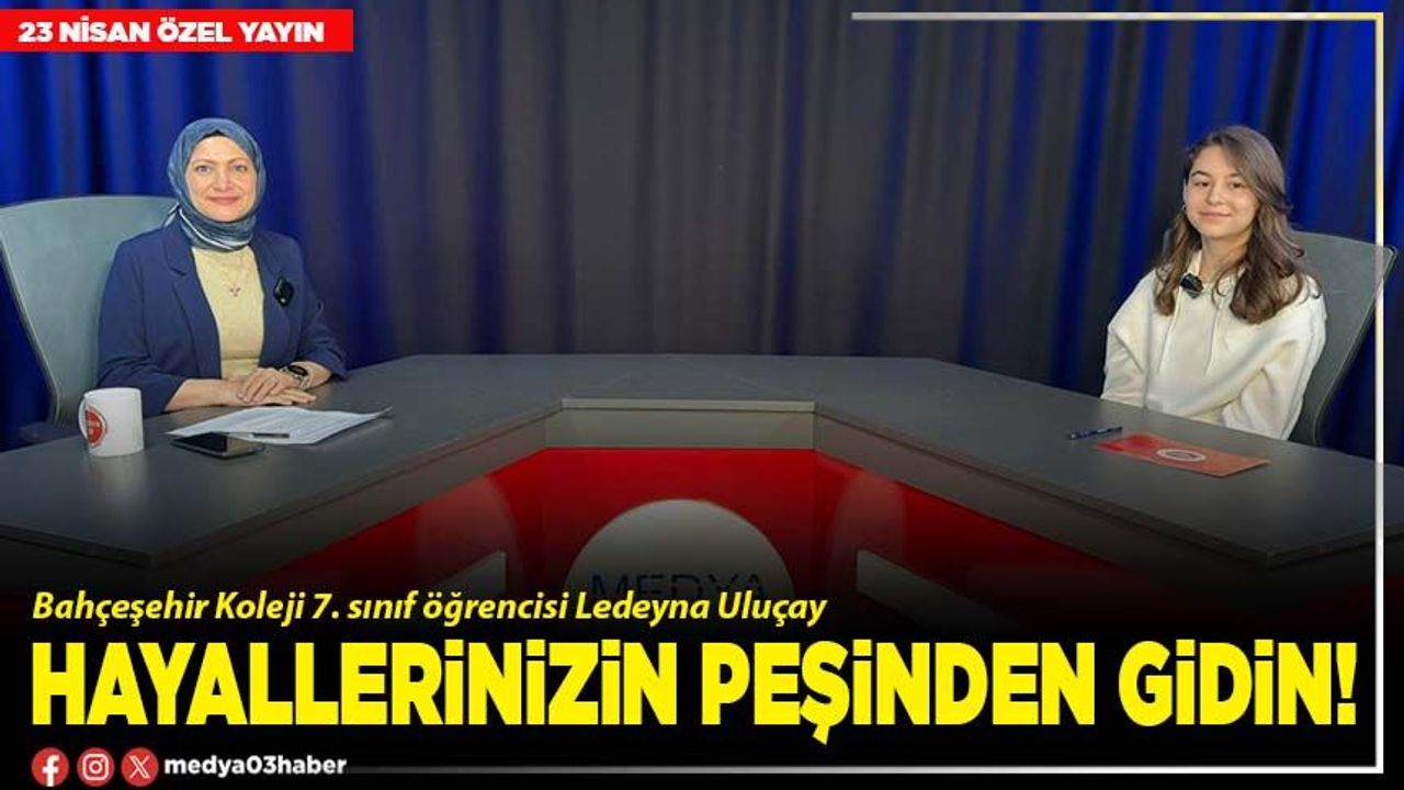 Afyonkarahisar’da birbirinden başarılı öğrenciler 23 Nisan Ulusal Egemenlik ve Çocuk Bayramı nedeniyle Medya03’de düzenlenen “Geleceğin Mimarları” özel yayının konuğu oldu. Rasime Fedakar’ın moderatörlüğünde gerçekleşen programa konuk olan Bahçeşehir Koleji 7. sınıf öğrencisi Ledeyna Uluçay, nasıl bir Dünya hayal ettiğini ve gelecekle ilgili planlarını anlattı.