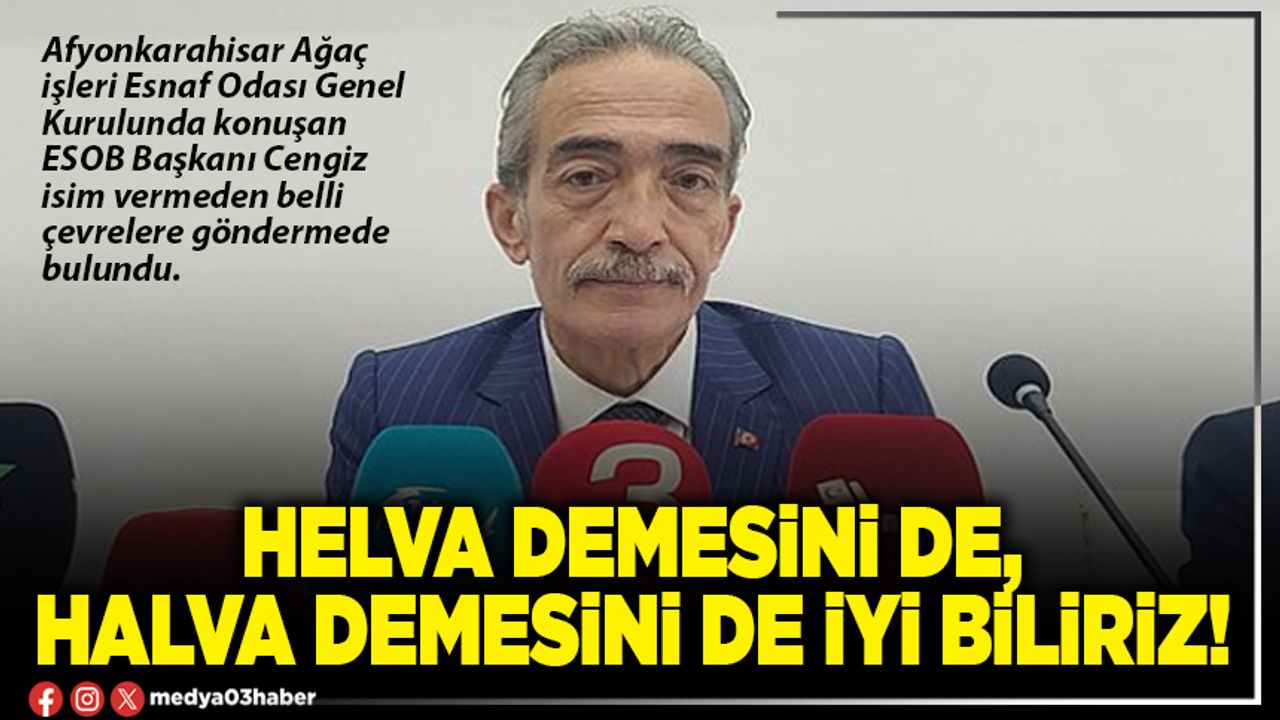 Burada siyasi temsilcilerimizin vasıtasıyla sesleniyorum: Bizim dönen şarkımıza çomak sokmayın. Helva demesini de biliriz, halva demesini de biliriz. Bizim suskunluğumuz, efendiliğimiz, ahi kültürümüzden aldığımız terbiyedendir. Bu teşkilatların damarından, asil kanındandır. Ama susuyorsak da bilin ki! Korktuğumuz için değil. Bu teşkilatın temel taşlarını korumak üzeredir.” ifadelerini kullandı.