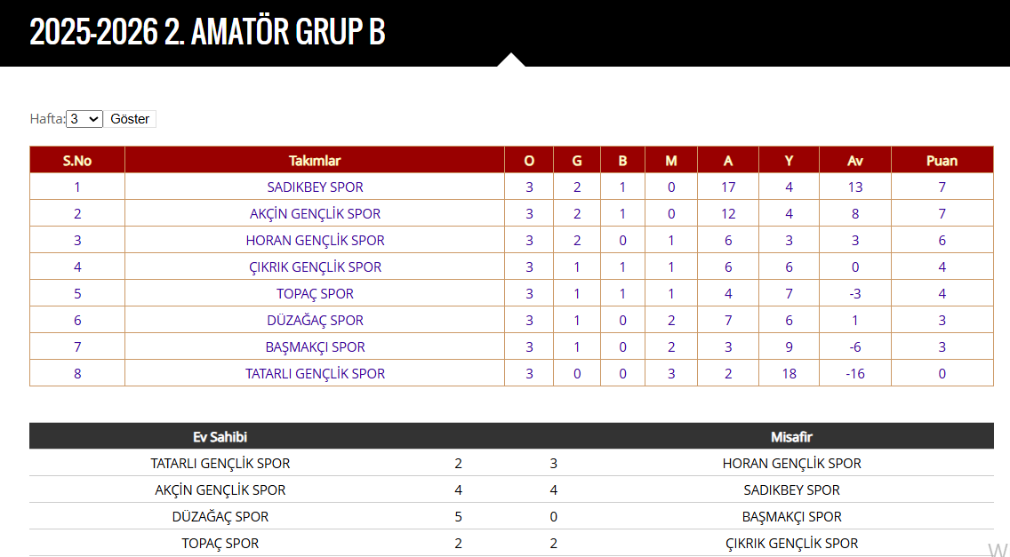 2. Amatör Küme B grubunda heyecan tüm hızıyla sürüyor. Sezona Sadıkbeyspor'a mağlubiyetiyle başlayan Horan Gençlikspor dün deplasmanda Tatarlı Gençlikspor’a konuk oldu. Rakibini Furkan Karaman (2) ve Soudais’in golleriyle 2-1 mağlup eden Horan Gençlikspor art arda 2. galibiyetini elde etti ve 7 puanla zirveye paylaşan Sadıkbeyspor ile Akçinspor’un ardından zirve yarışına ortak oldu.