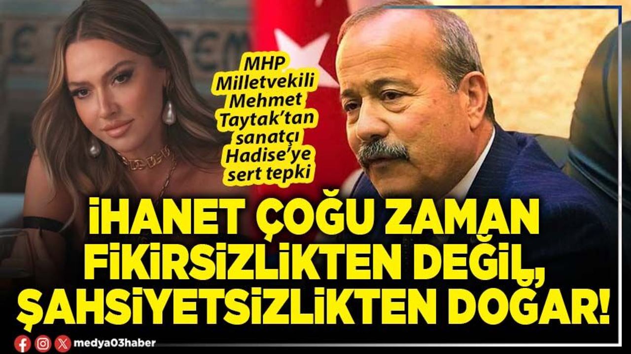 Ünlü sanatçı Hadise’nin UNICEF için hazırladığı video tartışılmaya devam ederken bir tepki de MHP Milletvekili Mehmet Taytak’tan geldi. Taytak ünlü sanatçıya Nurettin Topçu’nun sözüyle seslendi. Taytak, “İhanet çoğu zaman fikirsizlikten değil, şahsiyetsizlikten doğar.” dedi.