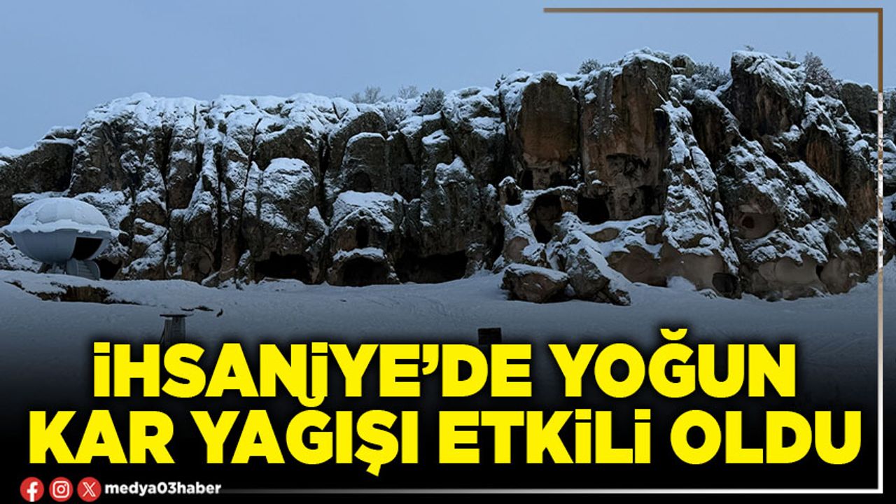Meteorolojinin yaptığı uyarıların ardından kentte beklenen kar yağışı İhsaniye ilçesinde etkisini gösterdi. İlçede dün başlayan kar yağışı gün boyu aralıklarla devam etti. Yağan kar sonrası ilçede kar kalınlığı yaklaşık 10 santimetreye ulaşırken, ilçede olumsuz hava koşulları nedeniyle okullarda bir gün tatil edildi. Beyaza bürünen ilçede kar yağışı özellikle sürücülere zorluk yaşattı.