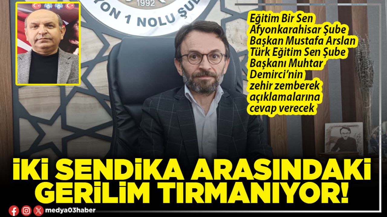 Türk Eğitim Sen Afyonkarahisar Şube Başkanı Muhtar Demirci, Hocalar ilçesinde yaşanan bir olayla ilgili Eğitim Bir Sen Şube Başkan Mustafa Arslan hakkında bugün zehir zemberek açıklamalarda bulunmuş ve “Sendika Başkanı, yardımcısı ve bürokratik uzantısı; Eşkıya mısınız, küheylan mısınız, terörist misiniz? Kamu Terör Örgütü müsünüz Sendikacı mısınız?” diye sormuştu.
