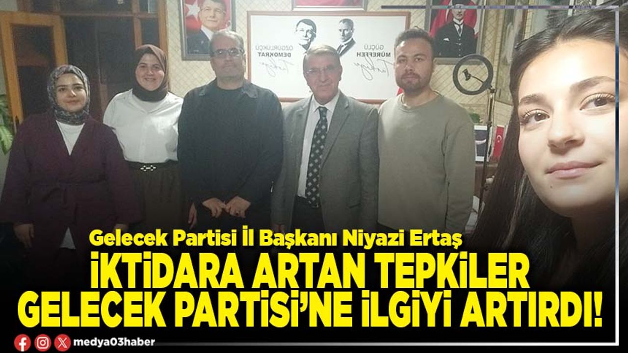 Ziyaret sonrası değerlendirmelerde bulunan Ertaş, iktidarın politikalarına yönelik artan tepkilerin Gelecek Partisi’ne ilgiyi artırdığını söyledi. Ertaş, “İktidarın daha önce sık sık terör örgütü elebaşı diye nitelediği Apo’yu ziyaret etmek için karar alması halkta büyük tepkiye sebep olmuştur. Bu bağlamda il başkanlığımıza halkımızın ilgisi artmış durumda, bir kısmı da partimize üye olmaktadır. Özellikle gençlerimizin partimize olan ilgisinden çok memnunuz” dedi.