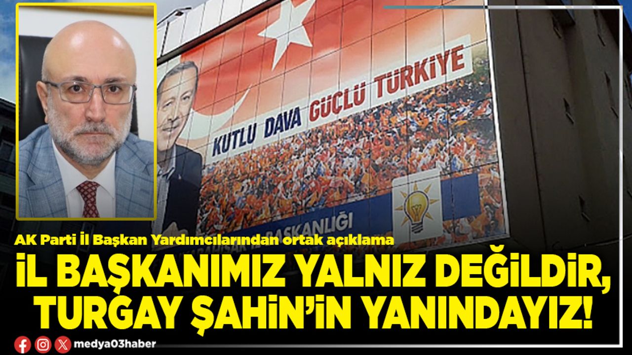 İl Başkanımız yalnız değildir. Teşkilatımızla, dava arkadaşlarımızla ve Afyonkarahisar sevdalılarıyla birlikte sonuna kadar İl Başkanımız Av. Turgay Şahin’in yanındayız.” ifadelerine yer verildi.