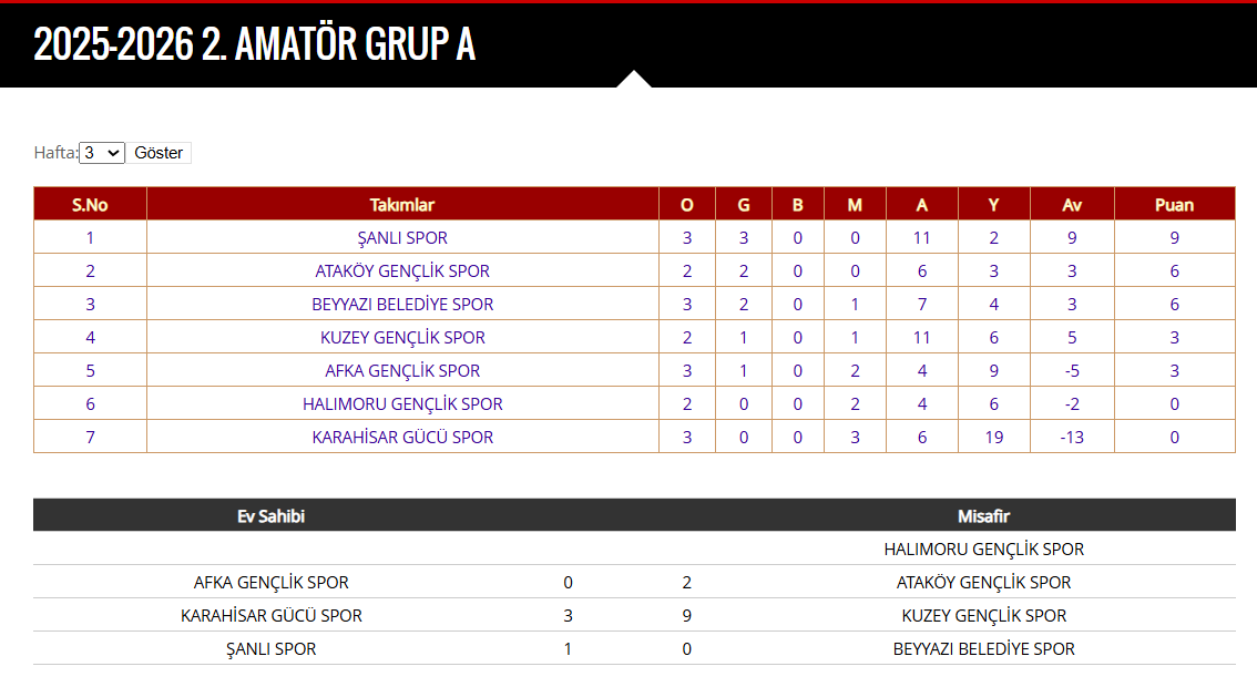 3'te 3 yapan Şanlıspor 9 puanla liderliğini bu haftada sürdürdü.