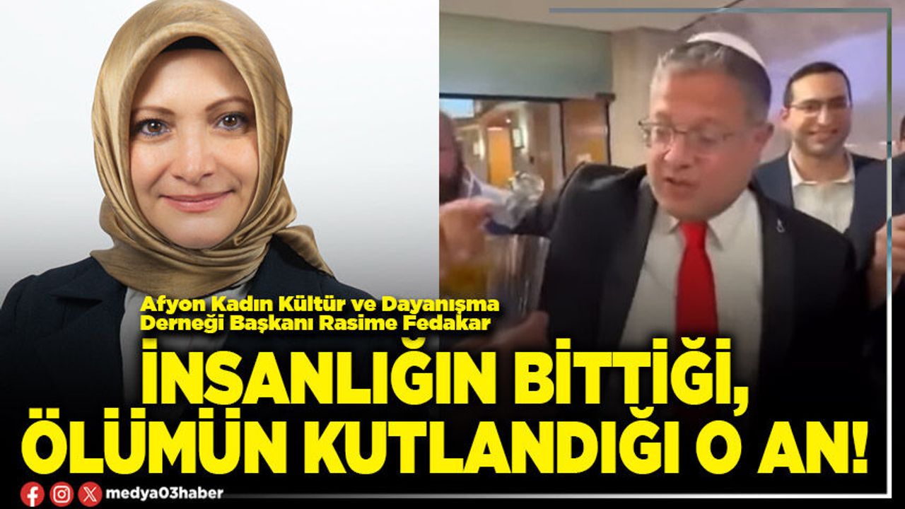 Konuyla ilgili Afyon Kadın Kültür ve Dayanışma Derneği Başkanı Rasime Fedakar yaptığı yazılı açıklamada şunları söyledi: “Gözlerimizin önünde, tarihin en karanlık, en utanç verici sahnelerinden biri yaşanıyor... İsrail Meclisi, Filistinli esirleri hedef alan ve doğrudan yaşam hakkını gasp eden o kanlı idam yasasını onaylamakla kalmadı; bir de bu insanlık dışı kararı Meclis salonunda şampanyalar patlatarak kutladı!