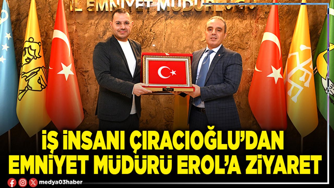 Karşılıklı görüş alışverişinin yapıldığı ziyarette, ilimizle ilgili güncel konular ele alınırken iş insanı Çıracıoğlu Müdür Erol’a Ayyıldızlı Türk bayrağı plaketi takdim etti.