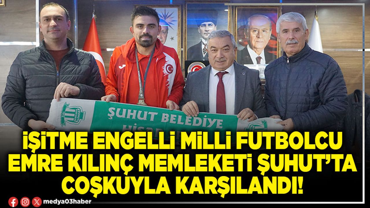Ziyaretten duyduğu memnuniyeti dile getiren Şuhut Belediye Başkanı Muhittin Özaşkın; “İşitme Engelliler Milli Takımımız Olimpiyatlarda altın madalya kazanarak ülkemizi gururlandırmıştır. Şuhutlu hemşehrimiz Emre kardeşimizde final maçında oynayarak altın madalyanın ülkemize kazandırılmasında önemli katkılar sağlayarak Afyonumuzun ve Şuhutumuzun gururu olmuştur. İlimizin yetiştirdiği başarılı sporculardan birisi olarak adını tarihe yazdırmıştır. İster sporda isterse başka alanlarda başarılı olmak için çok çalıştıktan sonra hiçbir şeyin engel olmayacağını gösteren en iyi örneklerinden birisi olmuştur. Başarıya giden yolda hiçbir şey engel değildir. Yeterki çalışmanızdan ödün vermeyin. Kendisini tebrik ediyor ve başarılarının devamını diliyorum” diye konuştu.