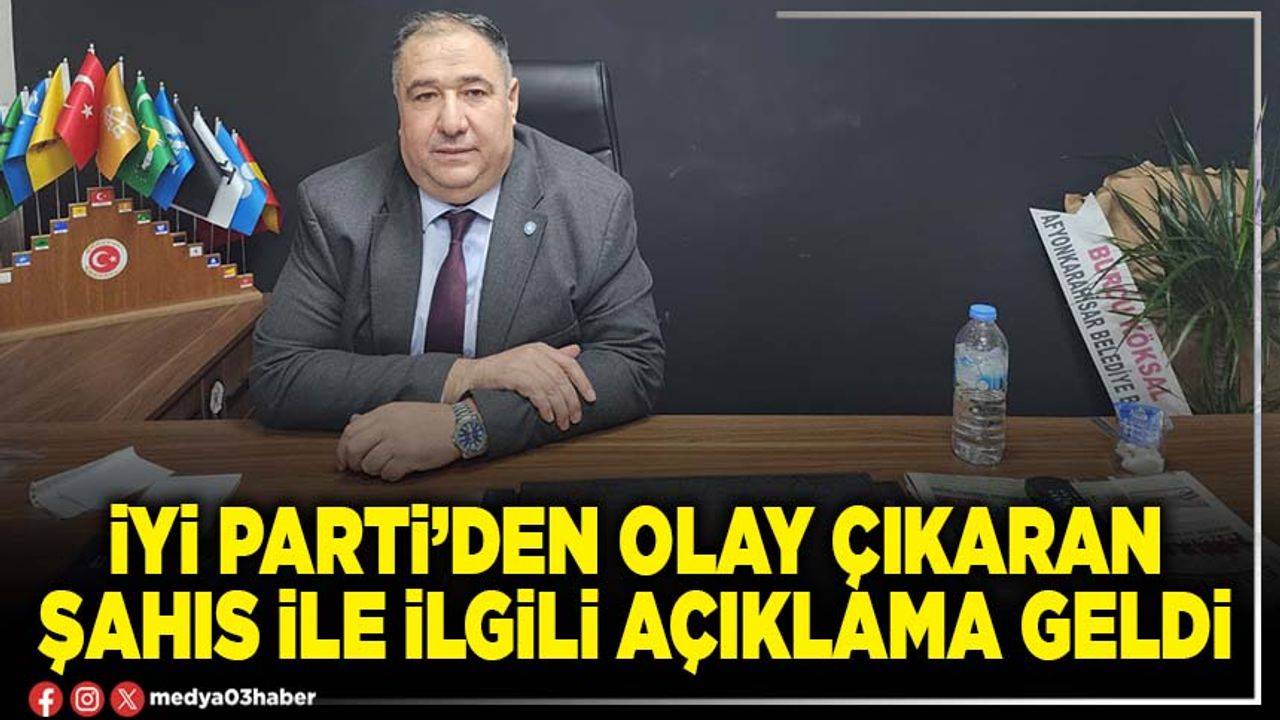 Konuyla ilgili yazılı bir açıklama yapan İYİ Parti Afyonkarahisar İl Başkanı Muhammet Mısırlıoğlu şunları söyledi: “İYİ Parti Afyonkarahisar İl Başkanlığı binasına gelen alkollü olduğu değerlendirilen bir şahsın, sözlü sataşma ve provokatif söylemleriyle başlattığı olay, il başkan yardımcılarımızın sağduyulu yaklaşımı sayesinde kısa sürede kontrol altına alınmıştır. Yaşanan hadise münferit bir olay olup, bunun dışında herhangi bir olumsuzluk yaşanmamıştır.