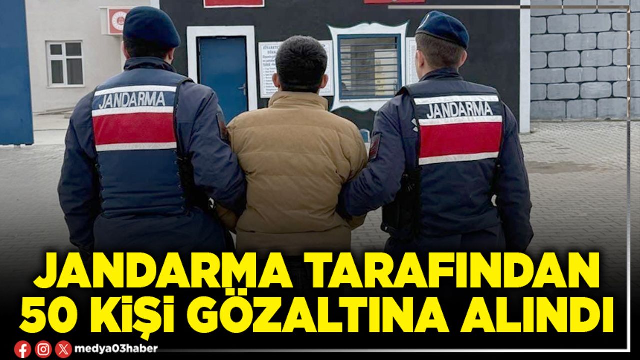 Edinilen bilgilere göre Afyonkarahisar İl Jandarma Komutanlığı tarafından aranan şahısların yakalanmasına yönelik yol kontrol uygulaması yapıldı. Gerçekleştirilen denetimlerde çeşitli suçlardan aranan 50 kişi gözaltına alındı. Şahıslardan 8'i jandarmadaki işlemlerinin ardından sevk edildikleri mahkemeler tarafından tutuklanarak cezaevine gönderildi.