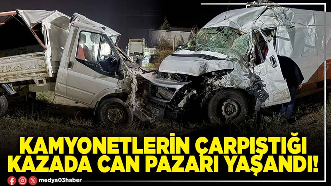 Kaza, Emirdağ ilçesi Tez Köyü Kavşağı’nda meydana geldi. Edinilen bilgilere göre, F.A., idaresindeki 03 HR 199 plakalı kamyonet sürücüsünün henüz belirlenemeyen bir sebepten ötürü direksiyon hakimiyetini kaybetmesi sonucu kontrolden çıkarak karşı şeride geçerek, M.Y.T.’nin kullandığı 26 BK 667 plakalı kamyonet ile kafa kafaya çarpıştı. Çarpışmanın etkisi ile araçlardan biri yol ortasına devrilirken, diğeri ise şarampole girdi. Kazada her iki araç sürücüsüyle birlikte M.A., yaralandı. Yaralılar kaza sonrası çevredekilerin haber vermesi üzerine olay yerine gelen ambulanslarla hastanelere kaldırıldı.
