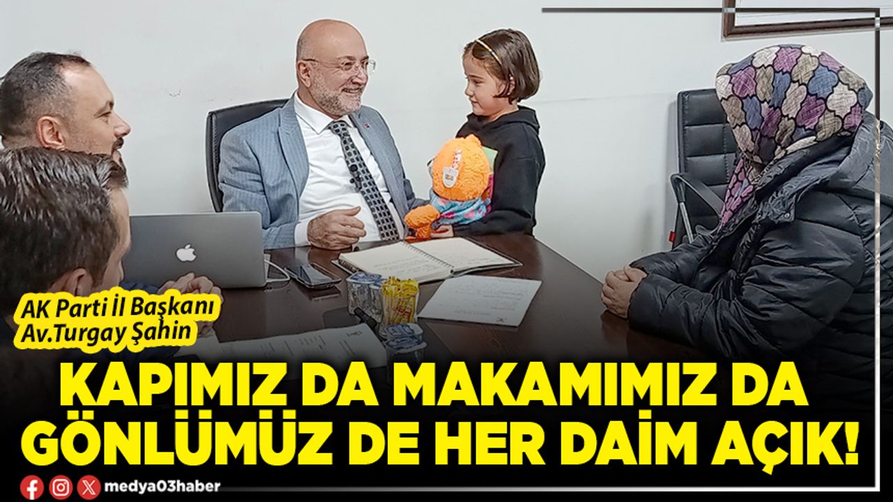 Türkiye Yüzyılı vizyonu doğrultusunda saha çalışmalarını aralıksız sürdüren AK Parti İl Başkanı Av.Turgay Şahin, hem sahada hem de makamında vatandaşlarla buluşarak talep, istek ve önerileri dinliyor. Şahin, vatandaşlardan gelen her konuyu kurmaylarıyla istişare ederek çözüme kavuşturmak için titizlikle çalışıyor. Şahin; “AK Parti olarak her zaman milletimizin yanındayız. Bizim için siyasetin özü, millete hizmettir.’’ dedi.