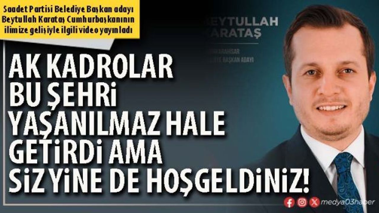 Saadet Partisi Belediye Başkan Adayı Beytullah Karataş’tan Cumhurbaşkanı Recep Tayyip Erdoğan’ın Afyonkarahisar’a gelişiyle alınan önlemler ile ilgili bir video yayınladı. Videoda Karataş’ın Afyonkarahisar’da yıllardır yaşanan kronik problemlere dikkat çekerek farklı bir dil kullandığı gözlendi.
