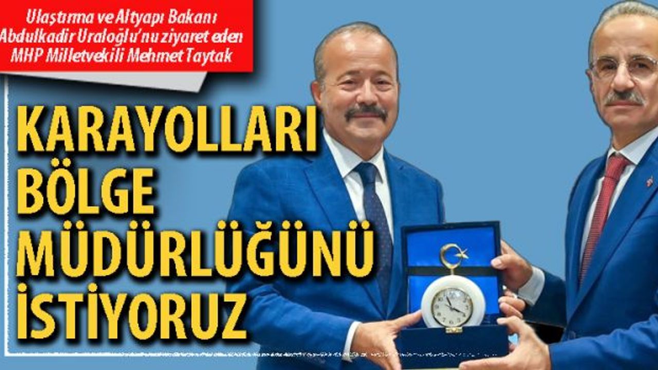 Karayolları Bölge Müdürlüğü’nün Afyonkarahisar’a tekrar kurulmasını gerektiğinin altını da çizen Milletvekili Taytak, “Karayolları Bölge Müdürlüğü talebimizi geçtiğimiz günlerde Afyonkarahisar’a gelen Cumhurbaşkanı Yardımcımız Cevdet Yılmaz Bey’e iletmiştik. Ülkemizin, güneyinden kuzeyine, doğusundan, batısına tüm yollar Afyonkarahisar’ımızdan geçmektedir. Türkiye’nin en önemli kavşak noktalarından birisi olan ilimizde 727 km karayolu bulunmaktadır. 1979 yılında Karayolları 18. Bölge müdürlüğü Afyonkarahisar ilimiz için kurulmuştur. Ancak 12 Eylül askeri darbesiyle birlikte Afyonun Karayolları Bölge Müdürlüğü maalesef lağvedilmiş, sonrasında da kurulmamıştır. Konya ve Antalya bölge müdürlüklerinin sınırları içerisinde yer alan ilimiz, Karayolları Bölge Müdürlüğünü hak etmektedir. Ankara- İzmir karayolu üzerinde 1. Organize Sanayi Bölgesi karşısında bulunan, 90 bin metrekarelik alana 12 bin metrekarelik kapalı hizmet binası yapılmış ve bu bina bölge müdürlüğü hizmeti verecek kapasitedir. Bu bölgeye bölge müdürlüğünün yakışacağını Sayın Bakanımıza da ileterek desteklerini istedik. ” dedi.