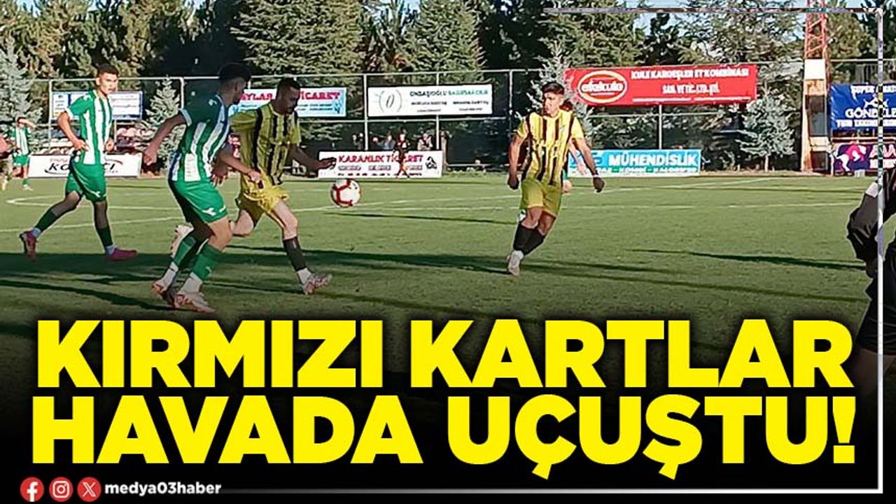 Karşılaşmanın uzatma dakikalarında ise kırmızı kartlar havada uçuştu. Maçın hakemi 90+6. dakikada Belediye Bolvadin Termalspor’dan Muammer Ali Selçik’i Şuhut temsilcisinden de Mehmet İpek, Semih Sarıkarlık, Hasan Erdem Vatandaş, Gürkan Uçak kırmızı kartla ihraç etti ve maç 3-3 sona erdi.