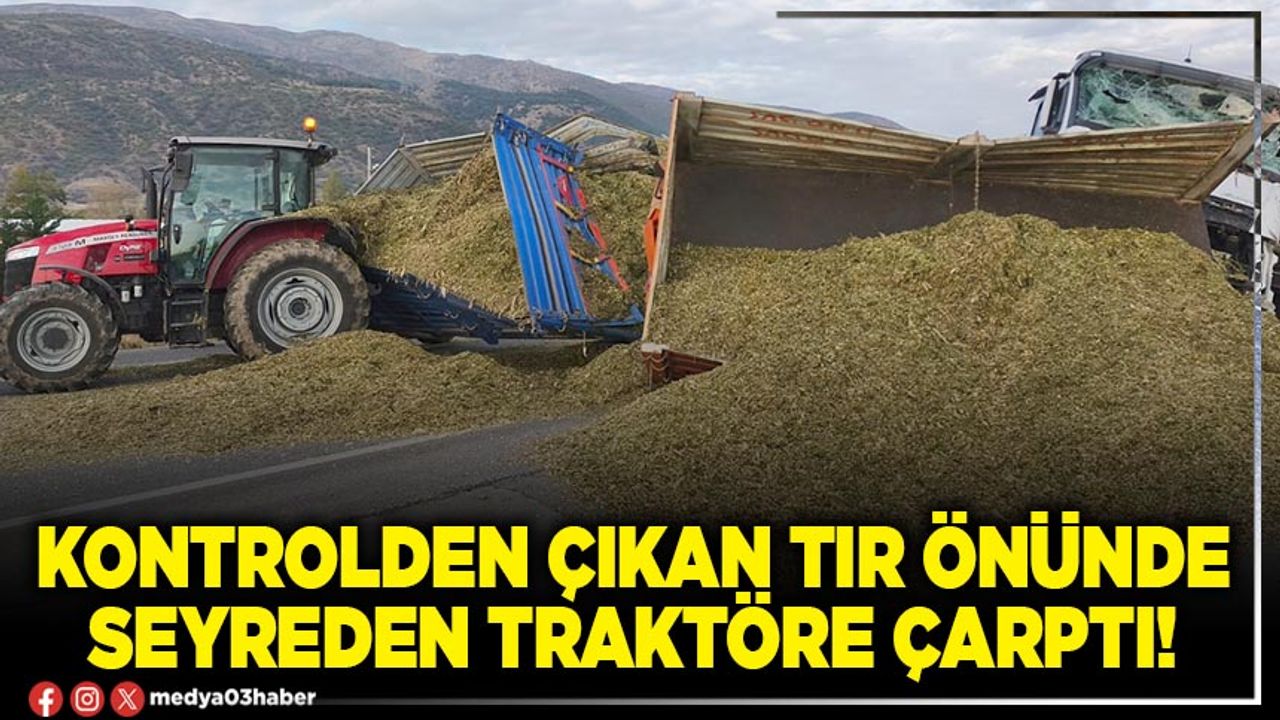 Afyonkarahisar'da kontrolden çıkan tırın önünde seyreden traktöre çarpması sonucu meydana gelen trafik kazasında 2 kişi yaralanırken, olayda traktörün römorkunda taşıdığı yaklaşık 2 ton hayvan yemi ise çevreye saçıldı.