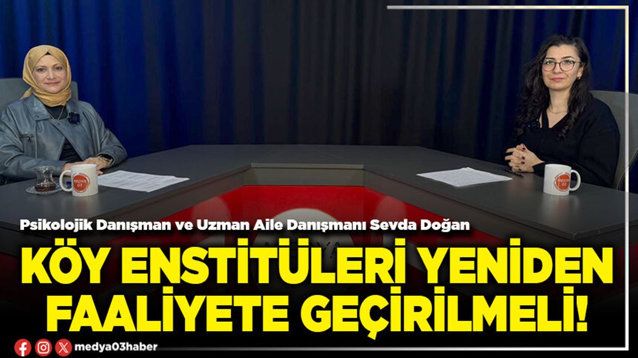 Bütün dünyanın gıptayla baktığı Finlandiya’nın eğitim sistemi olarak köy enstitülerini rol model aldığını ifade eden Sevda Doğan şunları söyledi: “Atatürk döneminden bahsedecek olursak, o dönem köy enstitüleri varmış. Köy enstitüleri bence yeniden faaliyete geçirilmeli. Bu model Cumhuriyet döneminde bozkırı yeşertme dönemi olarak adlandırılıyor ve insanlar bir yandan dünya klasikleri okurken bir yandan tarlada çalışıyorlar veya inşaatta duvar örüyorlar. Hem üretiyorlar hem eğitim görüyorlar. Bugün baktığımızda insanlarımız kitap okumuyorlar. Hal böyleyken okuma oranları nasıl arttırılabilir? Halk eğitimler aracılığıyla olabilir veya bazı programlar farklı şekilde düzenlenebilir. Bugün tüm dünyanın gıptayla baktığı Finlandiya eğitim sistemini köy enstitülerini rol model olarak alıyor kendisine. O yüzden bir dönüşüm yaratmak istiyorsak toplumda eğitim sistemimizi düzeltmeliyiz. Anne babaların eğitiminden önce başlamalıyız.” dedi.