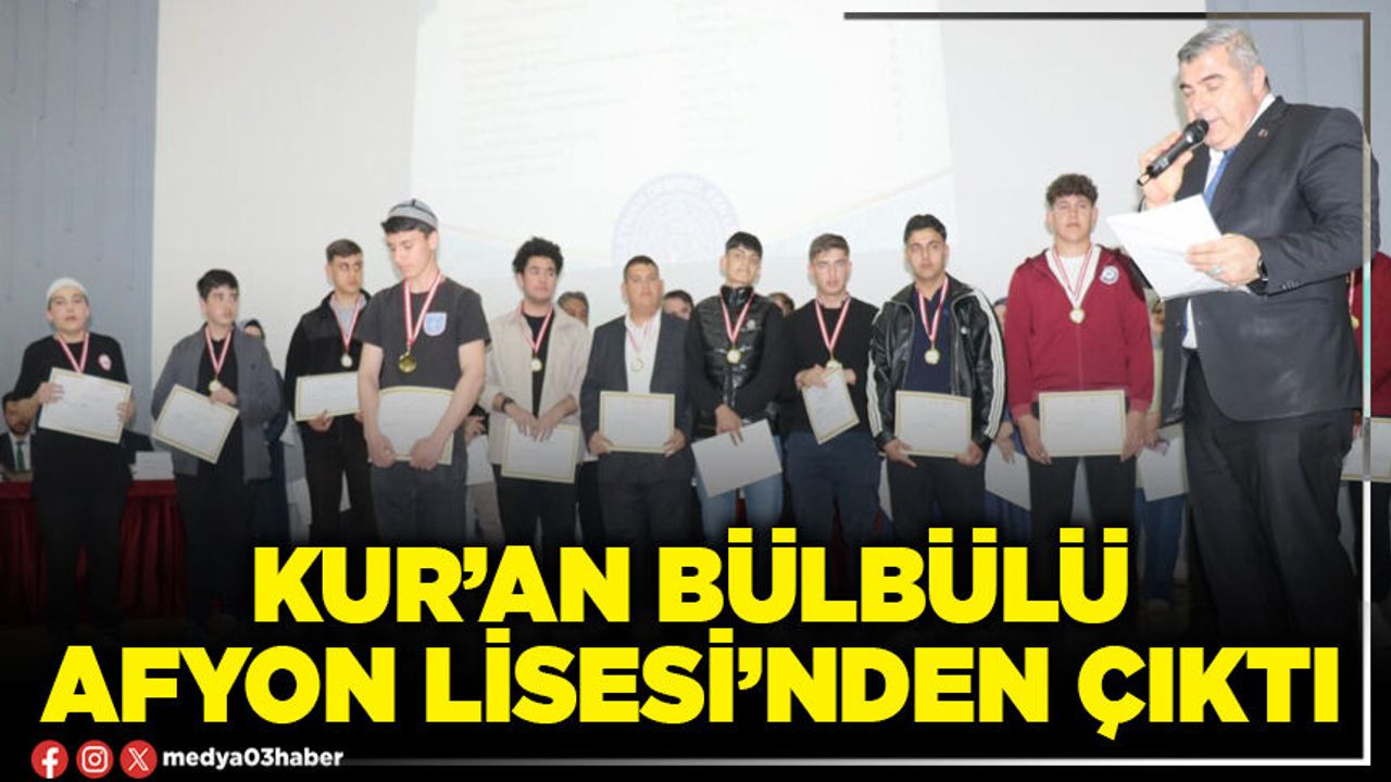 Afyonkarahisar’da Liselere yönelik Kur’an-ı Kerim’i Güzel Okuma Yarışması 1. Bölge finali gerçekleştirildi. 12 farklı okuldan 12 öğrencinin katılımıyla Afyon Süleyman Demirel Fen Lisesi koordinatörlüğünde, Şehit Kerim Üye Konferans Salonu’nda gerçekleştirilen yarışmada; Afyon Lisesi öğrencisi Sami Yusuf Atalık birinci olurken, Yusuf Özer Mesleki ve Teknik Anadolu Lisesi öğrencisi Alperen Okumuş ikinci, TOKİ Sosyal Bilimler Lisesi öğrencisi Mahmut Abdullah Ulu’da üçüncü oldu.