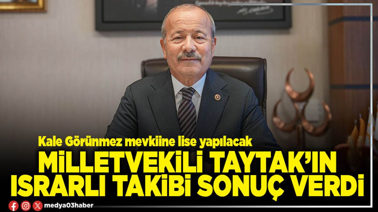 Milletvekili Taytak, konuya ilişkin değerlendirmesinde, “Eğitim, geleceğimizin teminatıdır. Afyonkarahisar’da hiçbir evladımızın eğitim hakkından mahrum kalmaması için dün olduğu gibi bugün de çalışmaya devam edeceğiz. Kale Görünmez mevkiindeki bu yatırım da, kararlı duruşumuzun ve takibimizin bir sonucudur” ifadelerini kullandı.