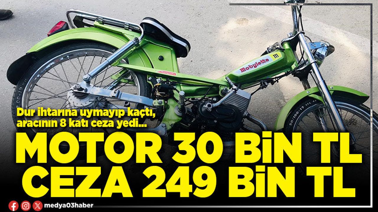 Bolvadin İlçe Emniyet Müdürlüğüne bağlı ekipler tarafından ilçe merkezinde trafik denetimi gerçekleştirildi. Denetimde ekipler durumundan şüphelendikleri bir motorsikleti durdurmak istedi. Ancak sürücü, polis ekiplerinin 'dur' ihtarına uymayarak kaçmaya başladı. Bunun üzerine ekipler motosikleti peşine düştü. Yaklaşık 10 dakika süren kovalamaca sonrası yakalanan sürücü N.B.S.'nin ehliyetinin olmadığını ve kullandığı motosiklette plaka bulunmadığını aynı zamanda motosikletin orijinal aksamının değiştirildiğini tespit etti. Polis ekipleri sürücüye ilgili kanun maddeleri çerçevesinde 249 bin TL para cezası kesti.