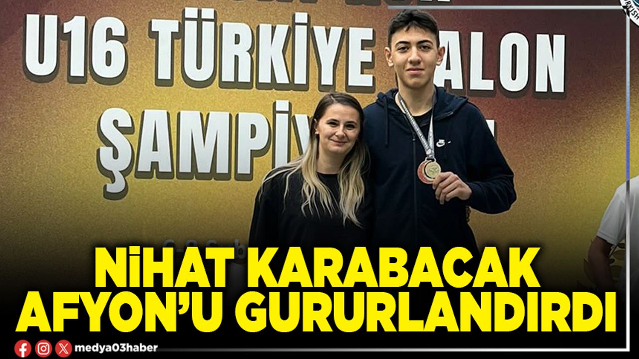 6-8 Şubat tarihleri arasında Bursa’da düzenlenen U-16 Salon Türkiye Şampiyonası’nda atletizm branşında Afyonkarahisar’ı temsil eden sporcu Nihat Karabacak, sergilediği başarılı performansla önemli dereceler elde etti. Sporcumuz, atletizm uzun atlama branşında 6.00 metrelik derecesiyle Türkiye ikincisi olurken, üç adım atlama branşında ise 12.16 metre atlayarak Türkiye Şampiyonu olmayı başardı.