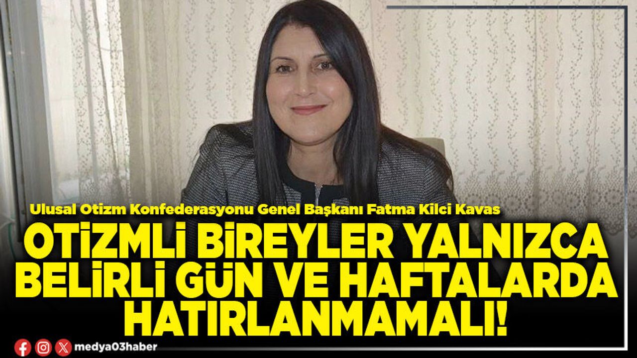 Ulusal Otizm Konfederasyonu Genel Başkanı Fatma Kilci Kavas, otizmin eksiklik değil, doğru destek ve erken tanı, bireyin potansiyelini ortaya koyabileceği nörogelişimsel bir farklılık olduğunu ifade ederek, "Otizmli bireylerimizin yalnızca belirli gün ve haftalarda hatırlanması değil yılın her günü hak temelli, sürdürülebilir ve kapsayıcı politikalarla desteklenmesi gerekmektedir." dedi.