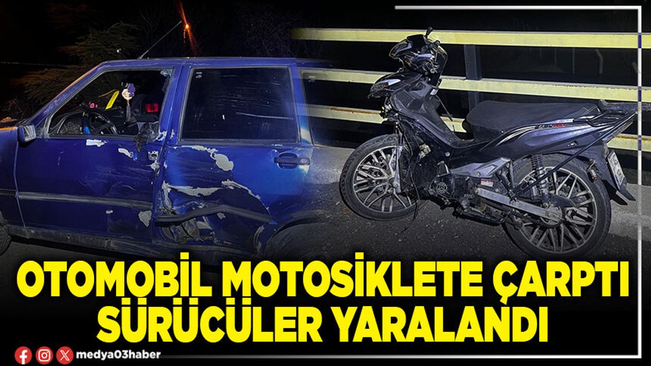 Kaza, Bolvadin ilçesi Yörükkaracaören köyü yakınlarında meydana geldi. Edinilen bilgilere göre, M.A., idaresindeki 03 ADY 126 plakalı otomobil henüz belirlenemeyen bir sebepten ötürü Ö.K.’nin kullandığı 03 AGD 269 plakalı motosikletle çarpıştı. Kazada her iki araç sürücüsü yaralandı. Yaralılar kaza sonrası çevredekilerin haber vermesi üzerine olay yerine gelen ambulanslarla hastanelere kaldırıldı.