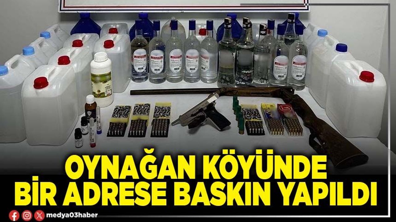 Afyonkarahisar'ın Oynağan köyüne jandarma tarafından yapılan baskında sahte alkol yapımında kullanılan malzemelerle birlikte ruhsatsız silahlar ele geçirildi. Olayla ilgili 2 kişi gözaltına alındı.