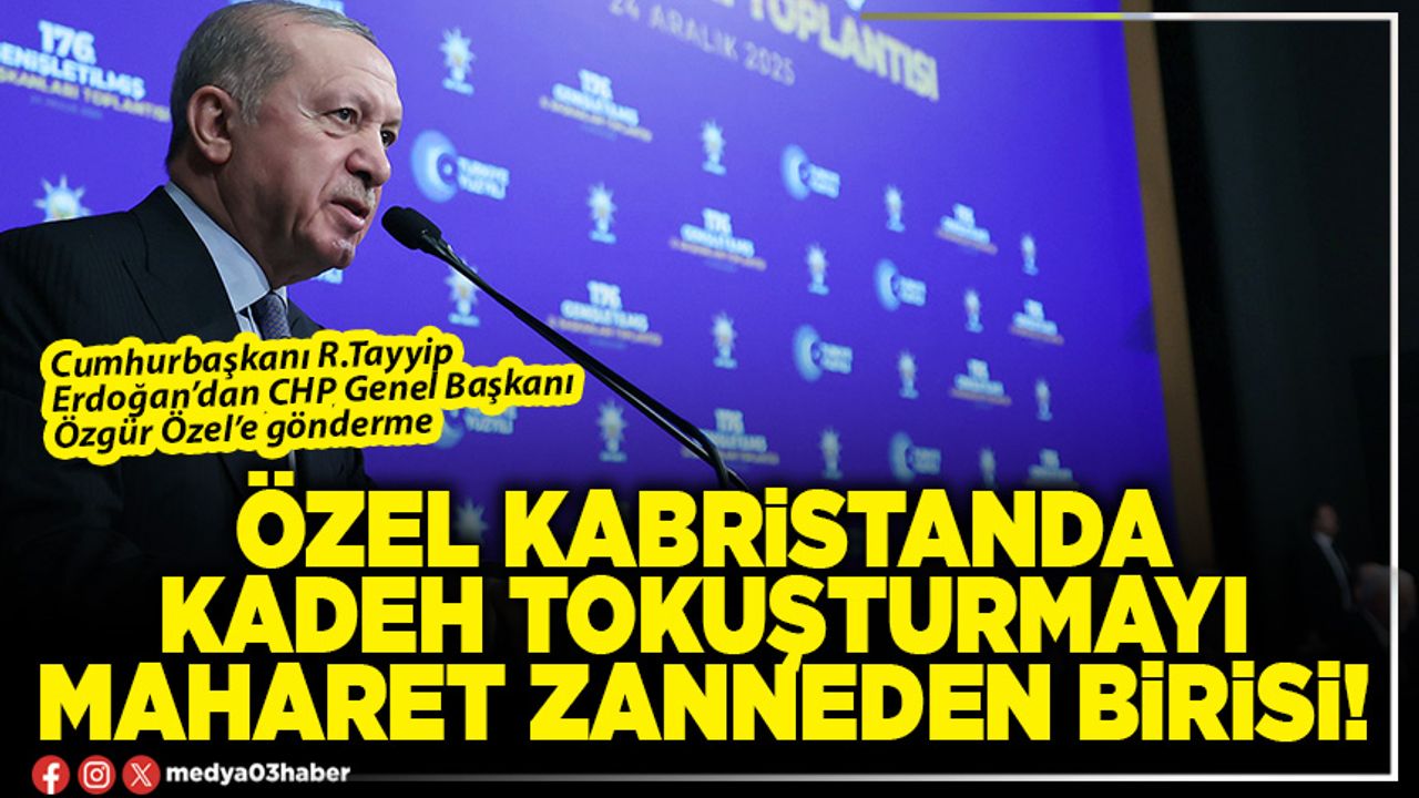 Hatta Sayın Özel'in tüm Türkiye'nin başını öne eğdiren içler acısı hallerini gördükçe, inanın onun adına ben hicap duyuyorum. Cumhuriyet Halk Partili vatandaşlarımın da, böyle bir ezikliği, böyle bir lakaytlığı kendi gönül dünyalarında kabul etmediklerine inanıyorum. Hoş Daha mezar başında nasıl davranacağından habersiz, kabristanda kadeh tokuşturmayı maharet zanneden birisinden, yurt dışında diplomatik temsil beklemek, beyhude bir uğraştır. Kendi müteveffa milletvekiline saygı duymayan, millete saygı duyar mı? Kendi örfünü, adetini bilmeyen, diplomasinin teamüllerini bilir mi? Çıkmışlar, bir de bu edepsizliği savunmaya kalkıyorlar. Ne diyelim, Allah CHP'li vatandaşlarımıza sabır; bunlara akıl-fikir versin" dedi.