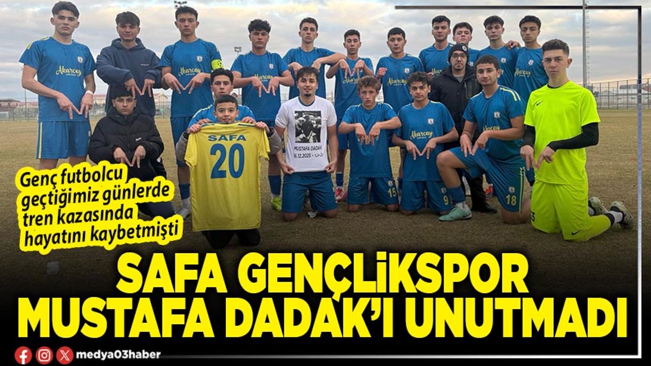 Karşılaşmanın ikinci yarısında Muhammed Yasin Erçoban ve konuk ekibin kendi kalesine attığı gollerle sahadan 3-0 galip ayrılan Safa Gençlikspor’da atılan her gol ve maç sonrası duygusal anlar yaşandı. Takım arkadaşlarını unutmayan Safasporlu futbolcular 3-0’lık galibiyeti takım arkadaşları Mustafa Dadak’a armağan ettiler. Merhum arkadaşlarının resimli tişört ve formasıyla poz veren futbolcular, Mustafa Dadak’ı hiç unutmayacaklarını acısını ilk günkü gibi yaşadıklarını ifade ettiler.