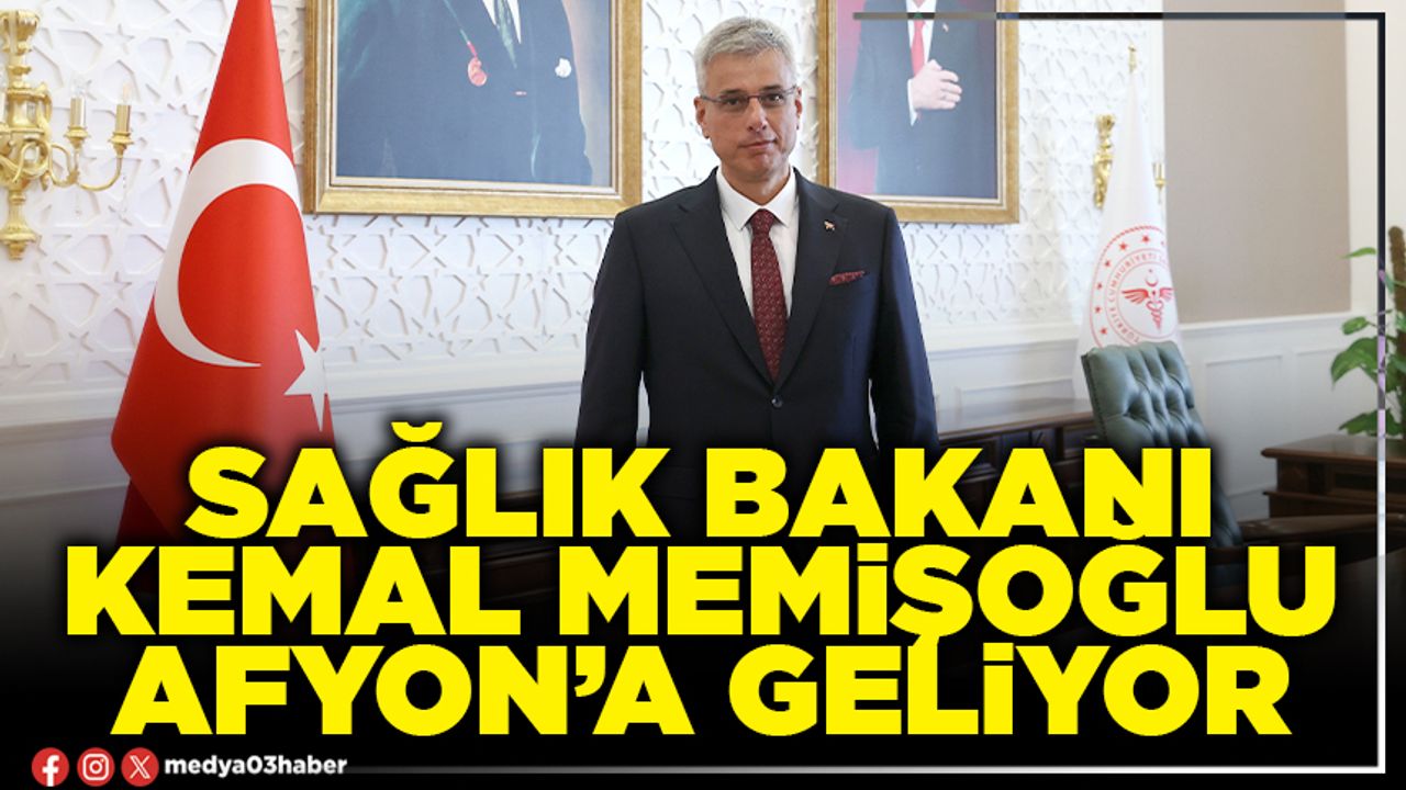 Sağlık Bakanı Prof. Dr. Kemal Memişoğlu yarın Afyonkarahisar’a gelecek. Resmi programı açıklamayan Bakan Memişoğlu ilk ziyaretini saat 10.00'da Vali Doç. Dr. Kübra Güran Yiğitbaşı'na gerçekleştirecek. Vali Yiğitbaşı’nın Bakan Memişoğlu’na ilimizde yürütülen sağlık hizmetleri ve yatırımlar hakkında bilgi vermesi bekleniyor.