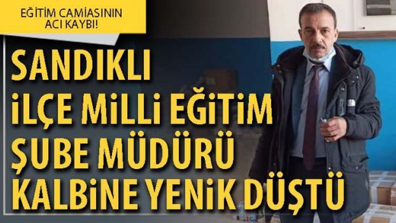 Sandıklı İlçe Milli Eğitim Şube Müdürü Mehmet Gönen geçirdiği kalp krizi sonucu hayatını kaybetti. Acı haberi Afyonkarahisar Milli Eğitim Müdürü Miraç Sünnetci paylaştı. Başsağlığı mesajı paylaşan Sünnetçi mesajında şu ifadelere yer verdi, “Tüm eğitim camiamızın başı sağ olsun. Sandıklı İlçe Milli Eğitim Şube Müdürümüz Mehmet Gönen geçirdiği kalp krizi sonucu vefat etmiştir. Merhuma Allah’tan rahmet, kederli ailesine sabırlar dileriz” dedi.