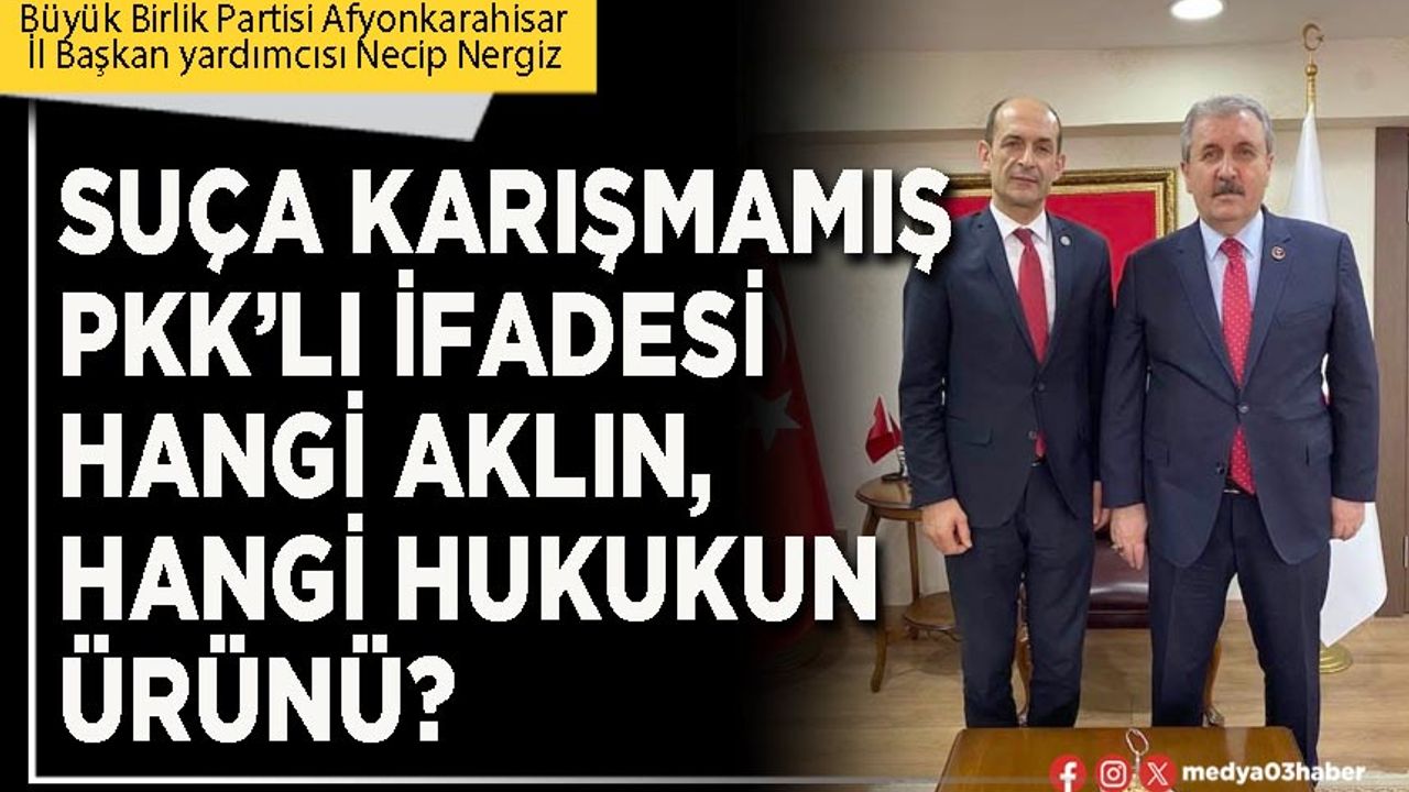Büyük Birlik Partisi Afyonkarahisar İl Başkan Yardımcısı Necip Nergiz'in "Suça bulaşmamış PKK'lı" affına karşı olduklarını ifade etti. Nergiz yaptığı yazılı açıklamada şunları söyledi: