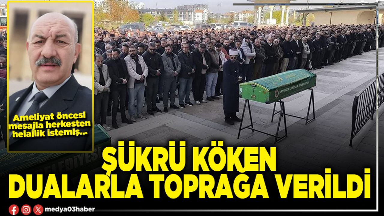 Açık kalp ameliyatı sonrası hayatını kaybeden Ege Davet ve Etkinlik Federasyonu (EDEF)Başkanı ve Afyonkarahisar Düğün Salonu İşletmecileri Derneğ i(AFDÜSİD)Başkanı Şükrü Köken (65) bugün öğle namazı sonrası kılınan cenaze namazı sonrası dualarla son yolculuğuna uğurlandı. Afyonkarahisar’ın sevilen simalarından olan Köken’in cenaze namazına sevenleri yoğun katılım gösterdi.