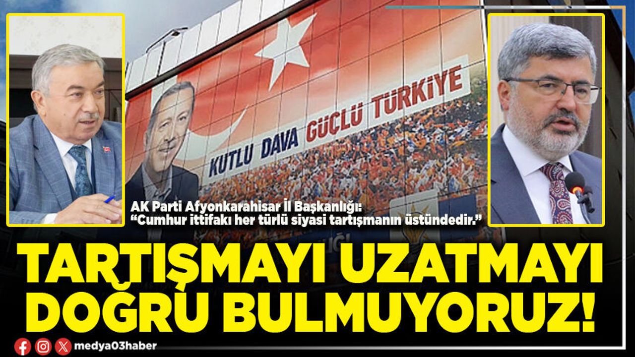 Kamuoyuna yansıyan açıklamalar sonrası AK Parti Afyonkarahisar İl Başkanlığı’ndan konuyla ilgili açıklama eldi. Yapılan açıklamada, “Seçimlerden sonra ortaya çıkan tabloda ister AK PARTİ'den isterse MHP'den seçilmiş olsunlar tüm belediye başkanlarımız Cumhur İttifakı’nın başkanlarıdır. Bundan sonraki seçimlerde, önceden ayrı ayrı girilen yerlerde belki de ittifak yapılacak ve omuz omuza mücadele edilecektir.” denildi.