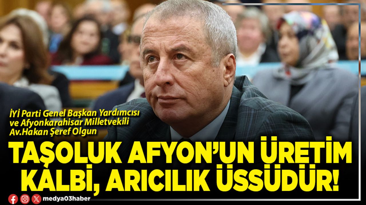 İYİ Parti Genel Başkan Yardımcısı ve Afyonkarahisar Milletvekili Av.Hakan Şeref Olgun TBMM’de devam bütçe görüşmelerinde Taşoluk Beldesiyle ilgili konuşan İYİ Parti Genel Başkan Yardımcısı ve Afyonkarahisar Milletvekili Av.Hakan Şeref Olgun şunları söyledi: “Afyonkarahisar Taşoluk’ta planlanan maden faaliyeti bölgenin tarımını, arıcılığını ve gıda zincirini yok edecek büyüklükte bir tehdittir. 696 hektarlık bir sahadan söz ediyoruz. Küçük bir alan değil. Taşoluk, Afyon'un üretim kalbidir, arıcılık üssüdür.”