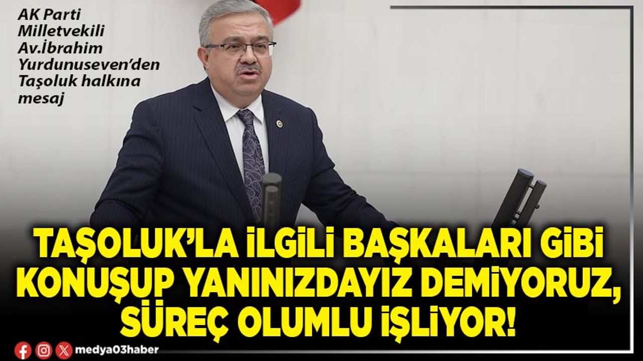 Konuşmasının sonunda Taşoluk’la ilgili süreçten de söz eden Yurdunuseven, “Ülkemizin neredeyse dörtte üç polen ihtiyacını karşılayan ve yeşiliyle, doğasıyla ilimizin nadide yerlerinden olan Taşoluk Kasabası ile ilgili olarak başkaları gibi sadece konuşup yanınızdayız demiyor; AK Parti Milletvekilleri olarak bakanlık nezdinde gerekli girişimleri yaptığımızı ve sonucun inşallah olumlu seyirde ilerlediğini Taşoluklu hemşehrilerimizle paylaşıyoruz” dedi.